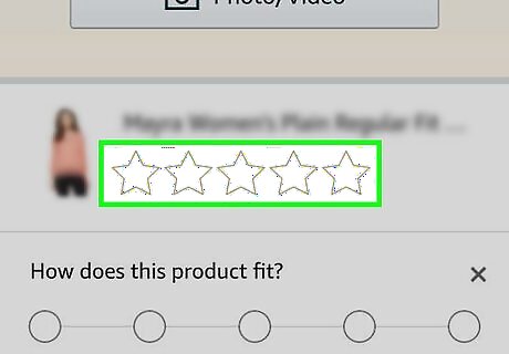 Select a star rating. In the row of blank stars below the item's title, tap the number of stars you want to rate the product. For example, to rate the product 5 stars, tap the 5th start to select all stars. To rate the product 2 stars, you'd tap the second star. The lowest possible rating is 1 star.