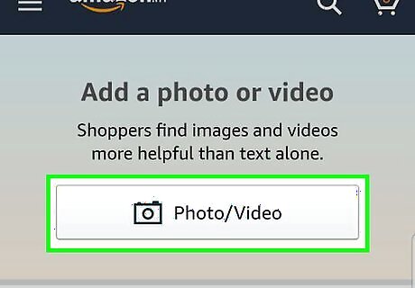Add a photo or video of the product (optional). If you want to give potential buyers a better idea of what the product looks like, tap the Photo/Video button near the top of the review. Follow the on-screen instructions to take a photo, record a video, or choose an image from your phone or tablet.
