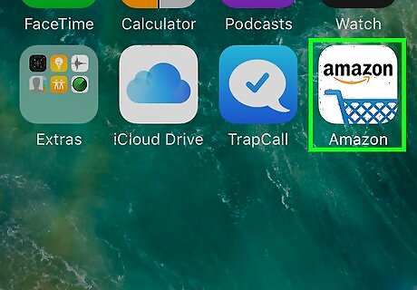 Open the Amazon app on your iPhone or iPad. It's the white icon with a blue shopping cart and the word "Amazon" inside. You'll usually find it on the home screen, or by typing "amazon" into Spotlight search.