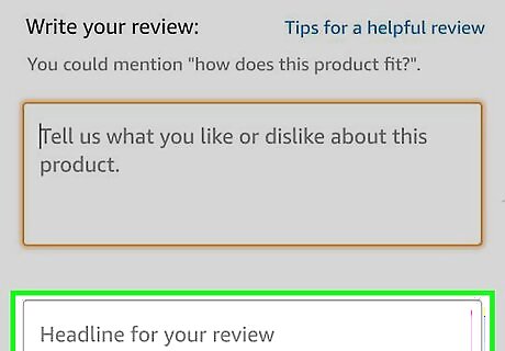 Type a headline. In the "Add a headline" box below your review, type a few words that summarize your views on the product. This text will appear in bold letters above the body of your review.
