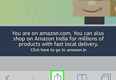 Tap the iPhone Blue Share icon. It's in the icon bar that runs along the bottom of the screen. If you don't see icons there, swipe down on the page to bring up the bar.