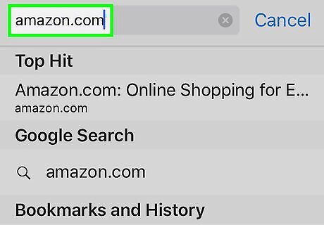 Type amazon.com into the address bar and tap Go. The address bar is at the top of the screen. This opens the Amazon homepage.