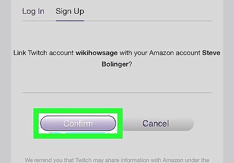 Sign in to your Twitch account. Enter your Twitch username and password, and tap the purple Log In button. This will sign you in, and take you to the confirmation page.