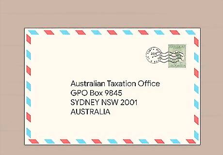 Mail your completed tax return to the ATO. If you ordered a packet from the ATO, you'll have a pre-addressed envelope you can use to mail your return. If you're mailing it using your own envelope, address it to Australian Taxation Office, GPO Box 9845, followed by the name and postcode of the capital city of your state or territory. If you're mailing in your tax return from overseas, send it to Australian Taxation Office, GPO Box 9845, SYDNEY NSW 2001, AUSTRALIA.