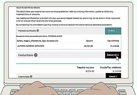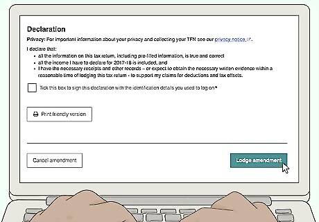Submit your tax return. Once you've confirmed all the pre-filled information is correct and have added any additional information, submit your return to the ATO. You'll get an email receipt verifying that your return has been received. If you think you made a mistake on your return or need to add something, you can file an amendment through your myGov account. However, you'll minimize delays if you wait until after your notice of assessment has been issued, then file your amendment.