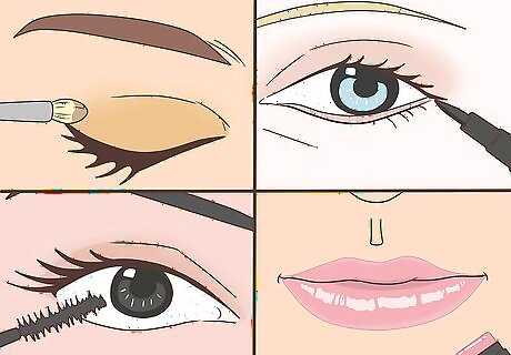 Be natural with your makeup. The most makeup Eleanor ever wears is a bit of foundation, mascara, eyeliner, neutral blush, and lip gloss. To mimic her look, try a natural shade like beige, tan, or matte gold on your eyelids. Once applied, blend it into a darker shade in your crease and line your lashes with a thin black eyeliner. Then, just apply your mascara and a tinted gloss and you're good to go! Try a light pink or dusky rose for your lips. You want a little color, but nothing over-the-top.