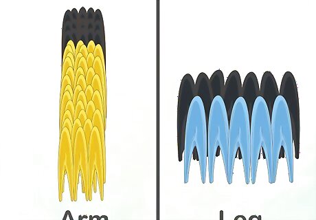 Make the hands and legs. For one hand you will need 5 black pieces and 12 yellow pieces. Use the same interlocking 3D method that you did above. For one leg you will need 7 black pieces and 5 blue pieces.
