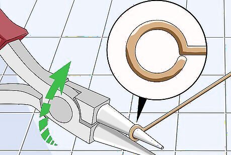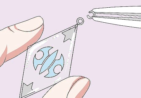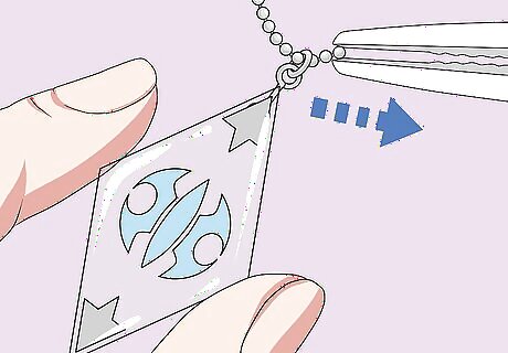 Use the pliers to open the jump ring, then slide the open ring through the eye loop on the pendant. Remember to open the ring by bending it sideways, instead of pulling it open.
