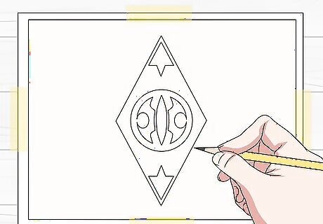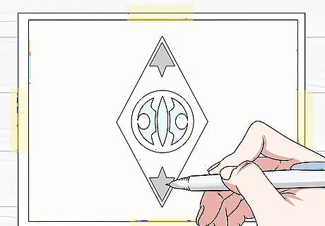 Use the pencil to trace the outer diamond-shaped line of the pattern for the pendant you wish to make. Notice that there are six different pendant patterns on the page, one for each attribute of Bakugan. You will only be tracing the outside line of this pattern for this step.