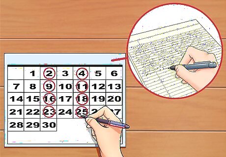 Schedule your writing time. While it is ideal to write every day, it is not practical for everyone. Consider your commitments and set a realistic goal for yourself. Determine how frequently you will write. Decide if you will have time to write every day, twice a week, or just once in awhile. Some weeks or months you will have more time. Be flexible. If you see an opportunity to write for an hour, grab it!