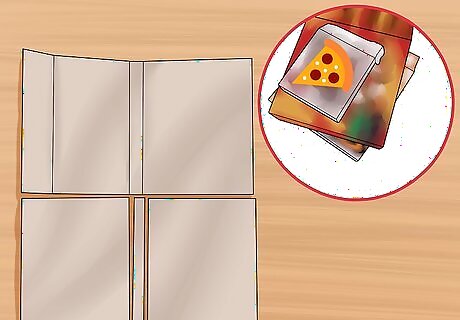 Create a cover. Measure the length of your book and the width of the front cover, spine, and back cover of your book. Trace out 4 pieces from cardboard. Piece 1 should be the length and width of the front cover. Piece two should be the length and width of the spine. Piece should be the length and width of the back cover. Piece 4 is the length the book and the combined width of front cover, spine, and back cover. Cut out the cardboard pieces. Use a glue stick to adhere pieces 1, 2, 3 to piece 4. Fold piece 4 along each edge of the spine. Allow it to dry. Pizza boxes work great!