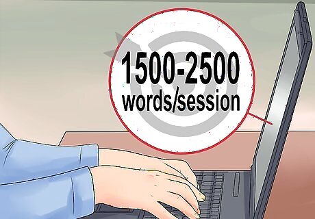 Set a word count goal. Set a realistic word count goal per writing session. This goal is meant to keep you accountable, focused, and progressing towards the completion of your work. If you are a slower writer, your word count goal may be 1000 words per session. If you only have one hour to devote per session and you are a speedier writer, set a word count goal of 1500 to 2500 words per session. If you are setting aside 4 to 8 hours a day to write, aim for 5,000 to 10,000 words per session. Don’t stress over failing to reach your goal in the allotted time. Instead, remain positive and try to meet the goal during your next session.