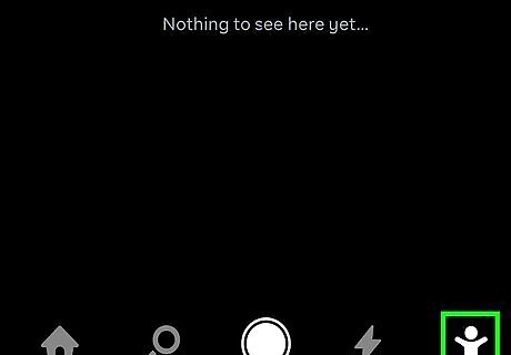 Tap the icon of the person waving two arms. This is the account/profile button and is in the bottom right corner of your screen.