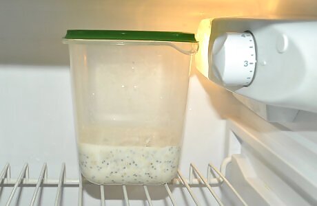 Cover the bowl and leave it in the fridge overnight. You can cover the bowl with a sheet of plastic wrap or a tight-fitting lid. The mixture will continue to thicken, giving you a tasty, pudding-like treat for breakfast the following morning. If you are too impatient, you can eat the breakfast bowl the same day. It may not be as thick, however.