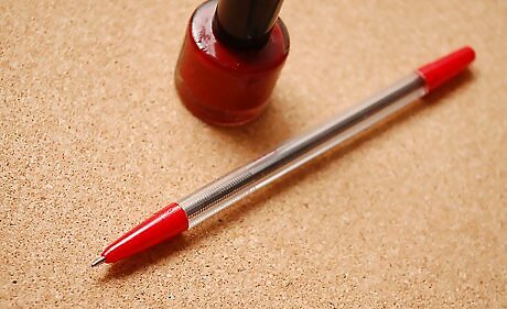Use a straight pin from your sewing kit. Hold carefully to avoid shake and apply as required. Grab a small piece of paper and nail polish to test-drive the dotter. Before you apply polish to the nail, you’ll want to make sure you achieve a clean dot. After you dip the straight pinhead into the polish, press it onto the paper first to remove excess polish and to ensure you're going to get the look you want. Consider using straight pins that have a variety of heads. Make different sized dots using tiny heads to larger straight pinheads.
