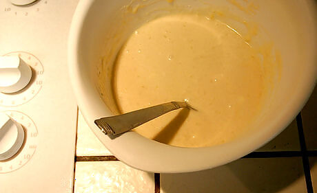 Use a plastic baggie. Pour the batter into a gallon or freezer plastic baggie. Remove all of the air and seal the bag. Use scissors to snip about ⁄4 inch (0.6 cm) off from one of the corners. Carefully squeeze the batter into the hot oil.