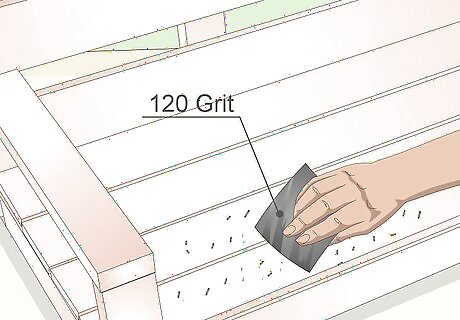 Smooth out the surface of the wood, if needed. Fill in any holes using wood filler. Let the filler dry, then sand it smooth with 120 grit sandpaper—be sure that you sand with the wood grain, not against it. Wipe away any dust using a damp cloth. If you will be painting your swing, it would be a good idea to apply some primer.