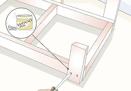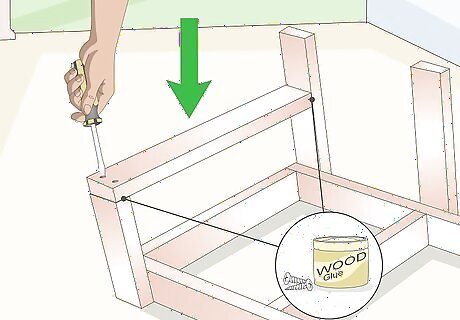Attach the back apron to the tops of the support joists. When you are done, you should have a rectangle with three vertical bars running through it. Use 2½-inch (6.35-centimeter) screws and wood glue. Drill the holes first, then coat both pieces of wood with wood glue. Clamp the boards together, then insert the screws.