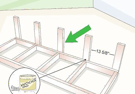 Add the back supports. Attach them to the back apron. They need to be 13⅝ inches (34.61 centimeters) apart. Use 2½-inch (6.35-centimeter) screws and wood glue.