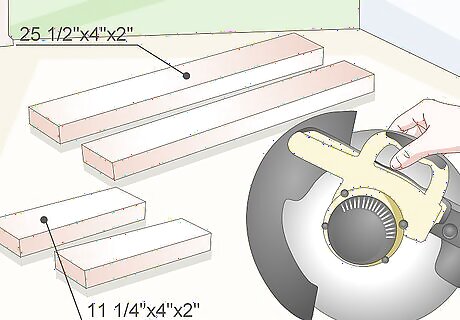 Cut your pieces. You will need two 11¼-inch (28.58-centimeter) long boards for the arm fronts. You will also need two 25½-inch (64.77-centimeter) long boards for the arm rests. Each board needs to be 4 inches (10.16 centimeters) wide and 2 inches (5.08 centimeters) thick.