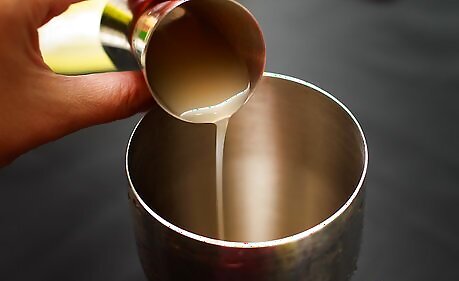 Place ice cubes and the liquor ingredients to the shaker.