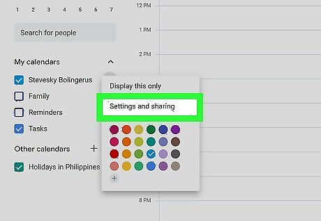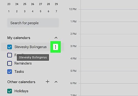 Click ⋮ on the left side of the page next to the calendar you want to edit. You'll see a list of the calendars you have under "My calendars," and the three-dot menu icon will appear next to the calendar's name when you hover your cursor on it.