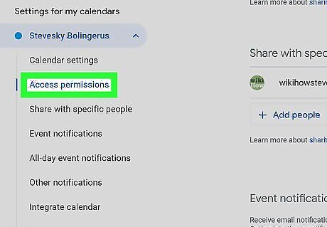 Click Access Permissions. You'll see this in the menu on the left side of the page under the header "Settings for my calendars."