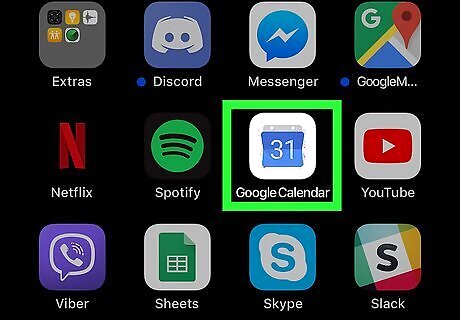 Open Google Calendar. This app icon looks like a flipboard displaying "31" that you can find on one of your Home screens, in the app drawer, or by searching.