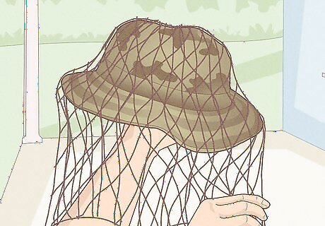 Attach a piece of 2'x4'netting onto your boonie hat or ball cap style camo hat in the same fashion. The netting should be large enough to completely cover your head and drape down below the neckline except for your face. If you want the netting to cover your face for some situations, you'll need to cut the face area in a manner that will allow you to tuck it up under your hat when you do not desire to conceal your face.