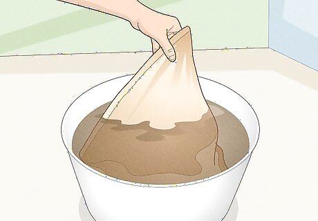 Dye your burlap by filling buckets with fabric dye and hot water. Mix in the dye until the color of the water matches your desired result. Stuff the burlap sacks into the buckets and leave them to soak overnight.