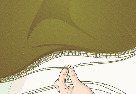 Cut off the bottom and side stitching of the burlap sack. This will produce a rectangular piece of workable material. You can either discard the cut-off stitching or save them to tie onto your ghillie suit.