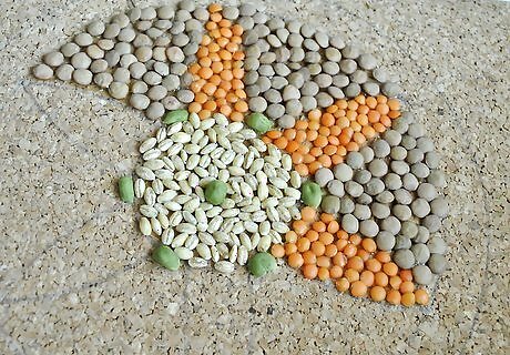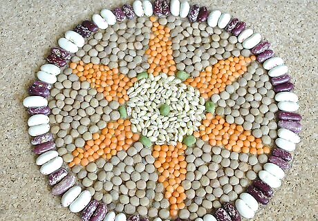 Select the lentils or dried beans you would like to form the mosaic. You can stick to one kind or both, and it is a good idea to vary the colors if possible. For example, lentils come in a range of colors, including browns, blacks, yellows and oranges. Beans come in different shades and patterns too. Keep the size differences in mind. Placing too large a bean or lentil next to a much smaller one may not be the look you're after in the mosaic design. Think about how you want the general design to be in terms of sizes before selecting the lentils and/or beans.