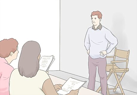 Cast your film. People in your community might work for screen credits in low-budget films. Of course, it would be advantageous to have a well-known name starring in your movie, but learning to play to the strengths of the actors you do have will ensure that you've got a great filmed product. If you need a cop character in your film, call one up and ask if he'd be willing to film a couple of scenes some afternoon. Just make sure that the movie doesn't involve anything illegal while the police officer is there, as this could not end well. If you need a college professor, contact the school. Test the range of your actors. If you know that one of them will have to cry in a sad scene, make sure he or she can do it before you contract for the project. Avoid scheduling conflicts. Make sure your actors can be available on-set when you need them. Be careful of stunts that may injure your actors. A big part of acting is nonverbal communication. Look for actors who can express how they're feeling and make you feel a certain way without having to say anything.