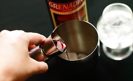 Add the peach liqueur, Southern Comfort, grenadine and the vodka to the shaker.