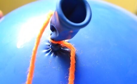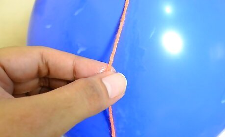 Tie one of the yarn pieces to your balloon, then use it to hang your balloon up. The easiest way to do this would be to tie the other end of the yarn to a cabinet handle. You can also tie it to a clothes hanger, then hook the clothes hanger onto something. This will keep your balloon suspended in mid-air and make it easier to work on.
