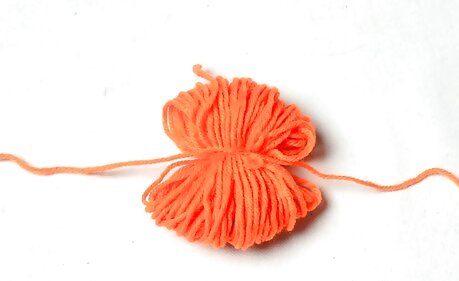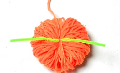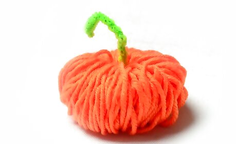 Fluff up your pumpkin and neaten it up. Once again, do not cut the loops of yarn apart. Instead, manipulate them with your fingers so that they are evenly spread around the stem, creating a squashed, pumpkin-like shape. At this point, you can cut the loose ends of the short piece of yarn off. Alternatively, you can tie them to a long piece of twine to make a garland.