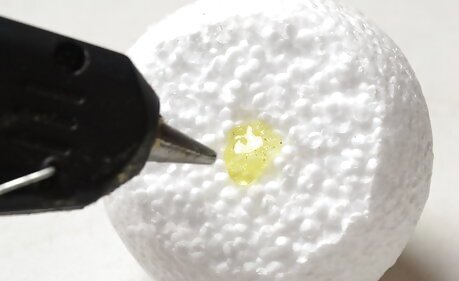 Find a small, plastic pumpkin to use as your base. If you can't find one, you can use a Styrofoam ball instead, then do the following: Use a saw or serrated knife to cut the bottom off of the ball so that it will sit flat and not roll around. Use a knife or a pair of scissors to drill a hole in the top of the ball for the stem. Fill the hole with some hot glue, then insert a short wooden stick; you can also use a cork.