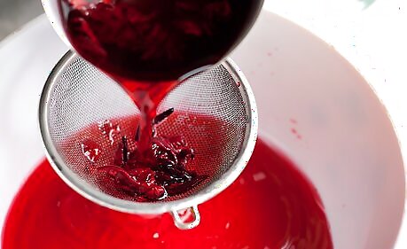Add 1/2 cup Flor de Jamaica and 1/2 cup sugar. If adding ginger, add it to the mixture at this point, also, to taste.