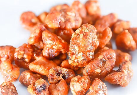 Use other nuts in candies. Brazil nuts, pecans and hazelnuts are just some of the other nuts that are used frequently to turn into candies. Pecan brittle Cashew brittle.