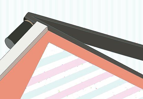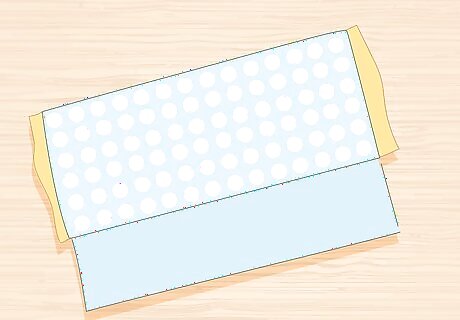 Place double-sided tape along the top edge of the cut paper. Set the cut scrapbooking paper down with the back/blank side facing you. Place a strip of double-sided tape along the top edge of the paper. This will help seal the wrapper and hold it in place.