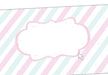 Copy-paste a background image or fill into the rectangle. Find a background pattern that you like, then copy-paste it into your document. Click and drag the sides of the image to resize it until it fits your box. Alternatively, you can fill the box using the program's fill option. If the box is already colored, click on "Format," then select "No Fill" to get a blank box. Use a color and pattern that matches your baby shower's color scheme.