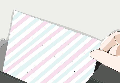 Purchase scrapbooking paper that matches your baby shower's theme. Scrapbooking paper comes in all sorts of fun patterns. If your baby shower has a specific theme, such as jungles or oceans, then buy scrapbooking paper that matches that theme. Alternatively, choose paper with a neutral pattern, such as stripes or polka dots. Solid colors are a good choice too. If you are going with a solid color or a neutral pattern, you could match the color to your baby's gender. If you don't know your baby's gender or wish to keep it a surprise, stick with purple or yellow.