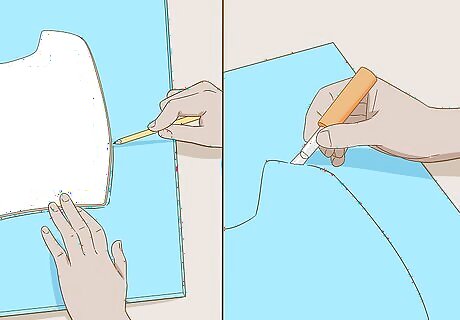 Trace the armor onto craft foam and cut it out. Set a thick piece of cardboard down on your cutting surface to protect it, then lay the cut out poster board pieces on your craft foam. Trace around them with a pen or pencil, labeling them if necessary to help you assemble them later. Then, use a sharp blade or exacto knife to cut out the pieces one by one. Cut slowly and make sure the edges are neat and smooth.Tip: You can find craft foam online or at crafting stores.