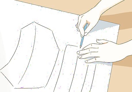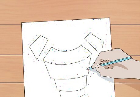 Sketch the shapes for each piece of armor onto the poster board. Use a pencil or pen to draw the design onto the paper. The design doesn’t need to be perfect; you’re just looking to get an accurate size for the main pieces of your armor. Don’t add any embellishments yet, either—just get the general shape of the pieces. You can save time by using the same tracing for identical pieces, like arm or leg segments. You can also use a mannequin or measure your armor on a friend instead.