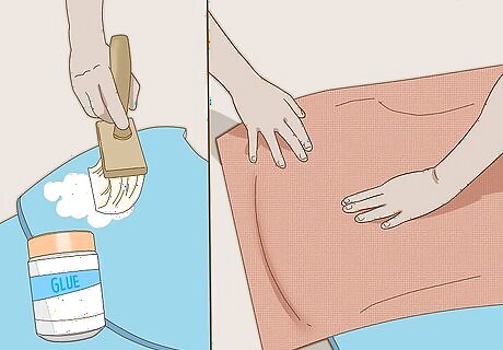 Strengthen the armor with fabric backing. If you want to make your armor more stable and durable, you can add an extra layer of fabric backing. Lay out a piece large enough to cover the back side of your piece of armor, then paint the back of the armor with an even coat of liquid glue. Place the fabric over it and smooth it into place, then let it dry and cut off the excess with scissors. Once it dries, brush on another coat of glue on top to seal it. If you want your armor to be even stronger, add a second layer of fabric backing; if not, simply let the glue dry. Use a fabric like cotton crinkle gauze, which is lightweight and easy to work with.