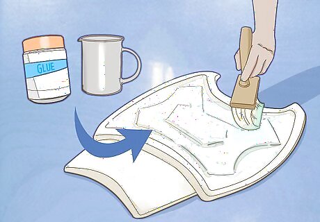Glue together any pieces that need to attach to each other. For some costumes, you’ll need to cut out pieces separately, then attach them later to get a certain look. If this is the case with your cosplay outfit, start putting these pieces together now with liquid glue. Use a thick, even layer, then press the pieces together for a minute. Let them dry for 5 minutes before moving on. You can use hot glue if you want, but liquid white school glue should be strong enough to hold the pieces together.
