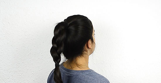 Gather your hair into a ponytail and braid it for a simple style. Comb your hair back into a ponytail and secure it with an elastic.Divide your hair into 3 sections. Cross the left section (A) over the middle piece (B), then the right section over what was originally the left section (C). Then, cross the new left section (B) over section A in the middle, then cross section C from the right over section B. Continue this all the way down the hair, then secure it with an elastic. For a sleek, smooth style, add a little hair gel to your hair before you braid it. To make a messier braid, gently loosen it with your fingers after securing it with an elastic.