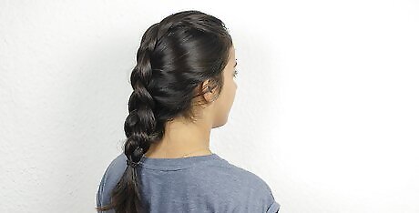 Pull your hair to one side and braid it loosely for a romantic look. A messy side braid looks soft and feminine, and it’s the kind of style that looks better as the day goes on and little tendrils come loose. Gather your hair behind one ear, then braid it loosely in a traditional braid and secure it with an elastic. Gently tug the individual plaits of your braid outwards to loosen them. This will make your hair look like it has more volume.