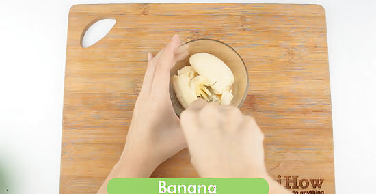 Break up the banana with a fork. For the mask, you'll need one banana. Place it in a bowl, and use a fork to mash it up until it's mostly smooth. Bananas are high in vitamin A, which helps encourages skin cells to turn over so your pores stay clean. You can use an overripe banana. It will actually be easier to mash up if it's extremely ripe.