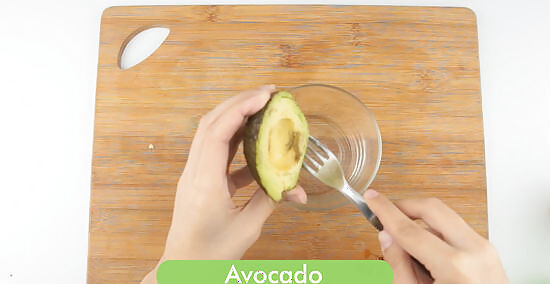 Mash up the avocado. For the mask, you'll need half a ripe avocado. Place it in a small bowl, and use a fork to mash it up so it has the consistency of guacamole. Avocado contains healthy fats that are highly moisturizing.